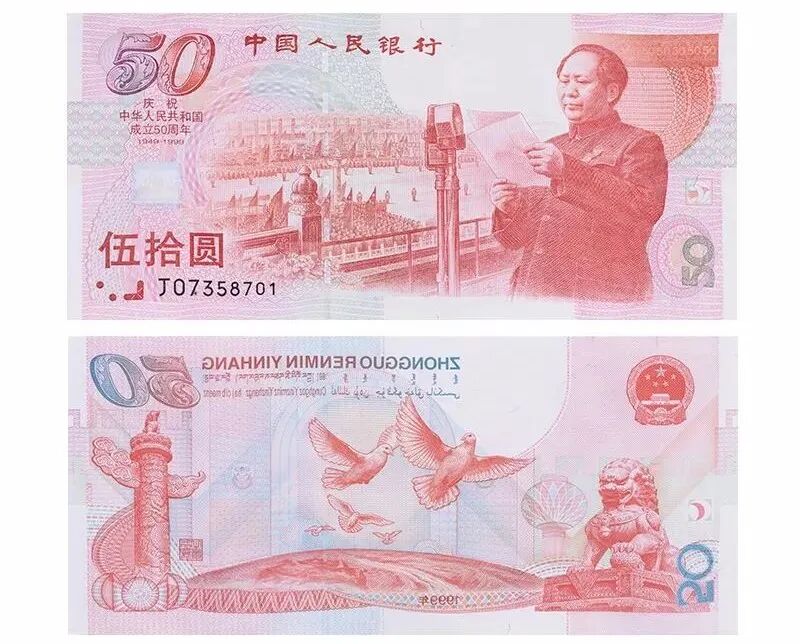 在这个普天同庆的好日子里,小藏给家人们带来我国第一张纪念钞——建国50周年纪念钞!