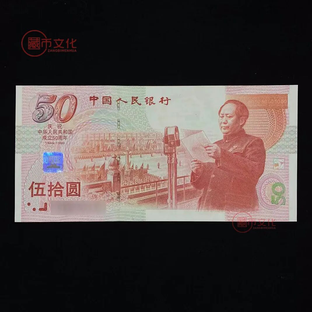因为当年纪念钞的收藏群体还很小,建国钞甚至还一度跌到面值以下。不过,后来随着收藏群体的增加,建国钞开启了一路上涨模式。建国钞的纪念钞龙头地位,使它成为了收藏爱好者必不可少的一张钞。1999年7月20日,为了庆祝中华人民共和国成立50周年,中国人民银行发行了一张中华人民共和国成立50周年纪念钞,简称建国钞。建国钞是我国首张纪念钞,发行数量有限。此钞为建国50年来首次发行,发行数量仅6000万,收藏价值不言而喻。建国钞的发行是对我国发展至今的一种肯定,也是国家走过这段艰难时期的总结,见证了这段难忘的共和国艰辛史,发行意义重大,其收藏价值,文化价值毋庸置疑。毕竟其发行至今已经经过20多年的时间了,沉淀非常足。而且像这种纪念钞的龙头,其配套需求是很高的,一般人拿到手就不会再卖出去。藏家收藏、自然损耗、以及配册送礼,加剧了市面上存世量的锐减,其价值也会在日后逐渐凸显出来。建国钞票面的设计和制作,在当时堪称我国纪念钞的最高水平。![]()