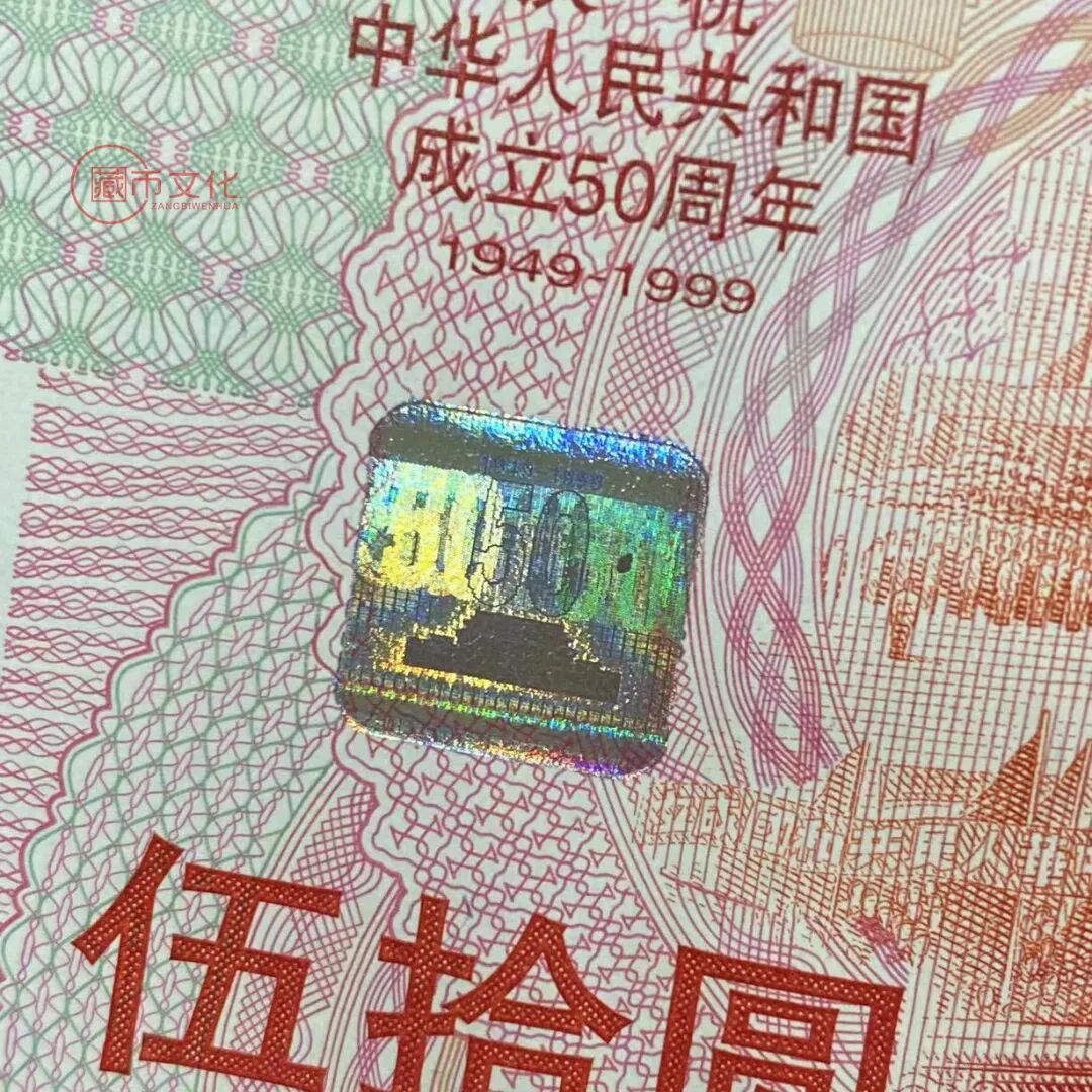 建国50周年纪念钞多处使用当时世界上最高的防伪技术,十二多处防伪特征,减少了假币出现的几率,为广大收藏爱好者提供了有利的收藏投资保障。在钱币收藏领域,纪念钞是特殊的袖珍板块,跟120枚普通纪念币相比,纪念钞目前只发行了六个品种,分别是:建国50周年纪念钞、千禧龙钞、奥运纪念钞和航天钞,人民币发行70周年纪念钞以及冬奥纪念钞!其中,建国50周年纪念钞为我国首枚纪念钞。同时,也是我国发行的唯一一张建国题材的纪念钞。作为中国第一钞的建国50周年纪念钞无论从寄予的情感诉求还是纪念意义上来说,都无法动摇该纪念钞的地位。建国钞的纪念钞龙头地位,使它成为了收藏爱好者必不可少的一张钞。收藏这种东西,不就是要收藏第一的吗?!国庆将至,今年是建国73周年,红色题材藏品依旧十分火热。