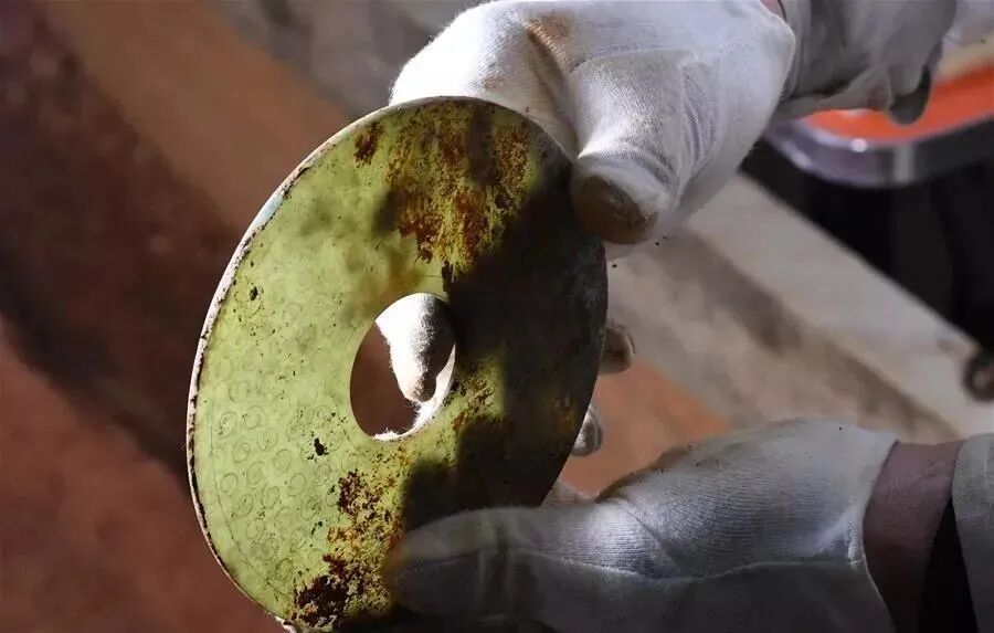 古玉来自墓葬,大多埋于土中。大地孕育万物,实乃厚德载物,大地也孕育了美玉,包括古玉。