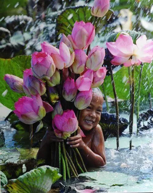 越南的气候特别适合鲜花种植,其中荷花是越南最具特色的花卉,也是越南的国花。