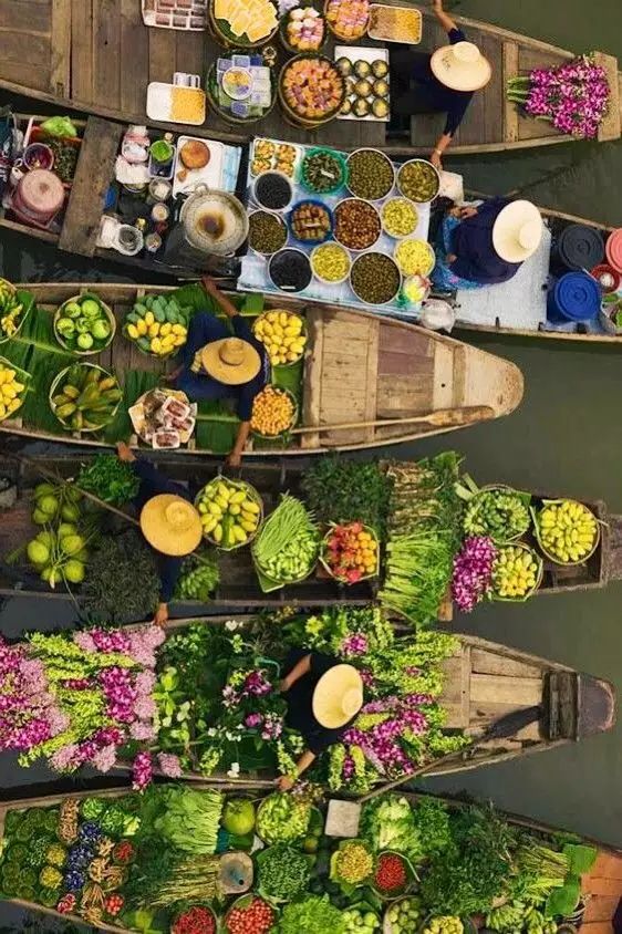 最有特色的是湄公河上的水上市场,各种鲜花、水果、水产应有尽有,水上交通十分繁忙。