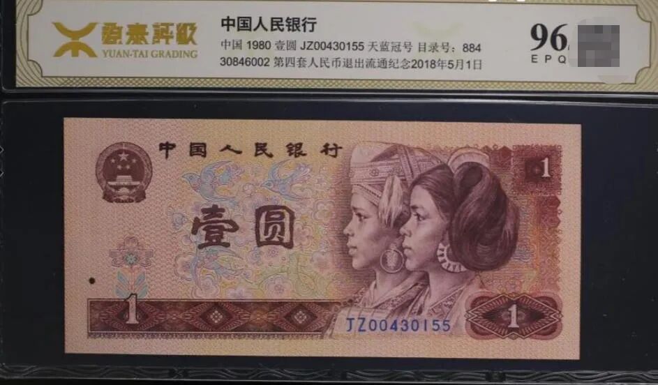 在第四套人民币中,我国共发行了三个版本的一元纸币,分别是1980年1元、1990年1元、1996年1元。