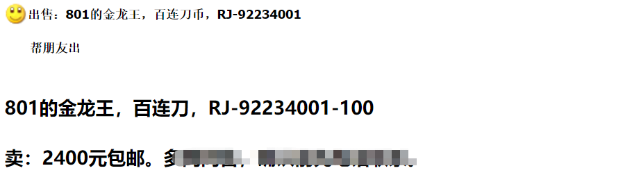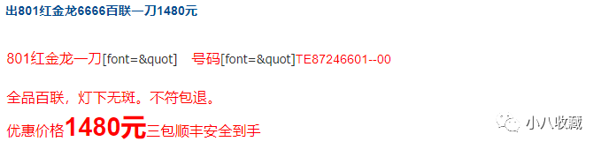 目前,一刀全新的801红金龙,市场报价高达1480元。