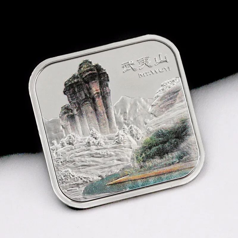 这枚武夷山银章,采用999纯银精工铸造,浮雕彩色工艺相辅相成,并采用先进的激光影像工艺,使银章精致典雅,美不胜收。