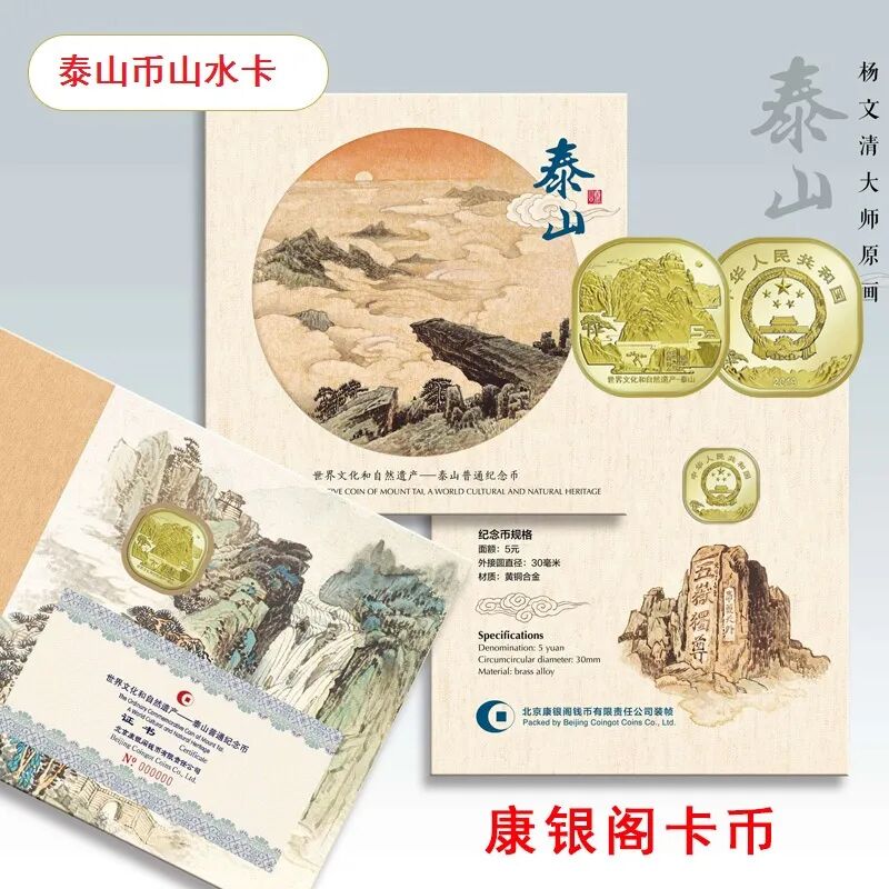 除此之外,康银阁还以“炫透+亮彩”对卡组合的形式,将泰山币与银章配套发行,非常难得!