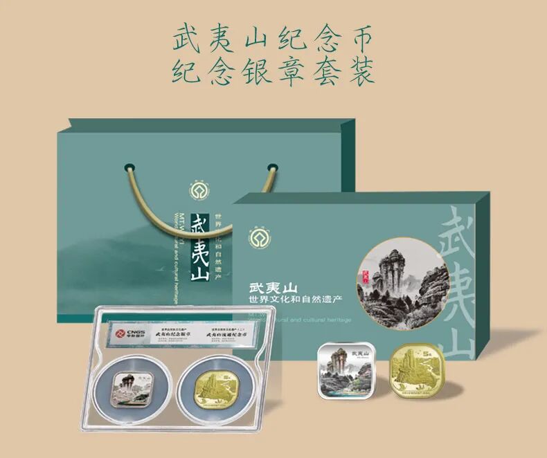 与泰山纪念币章套装同一系列的,还有武夷山纪念币章,同样精美绝伦。币+章套装,从两个不同的角度展现了武夷山的风光之美。
