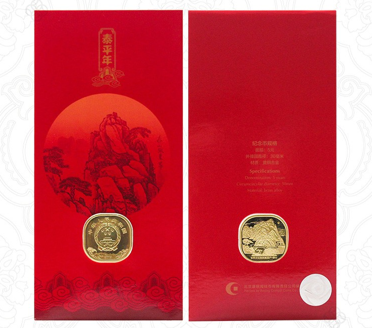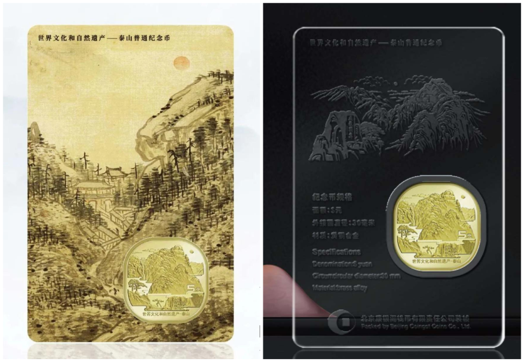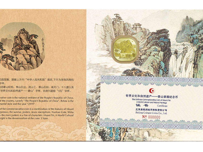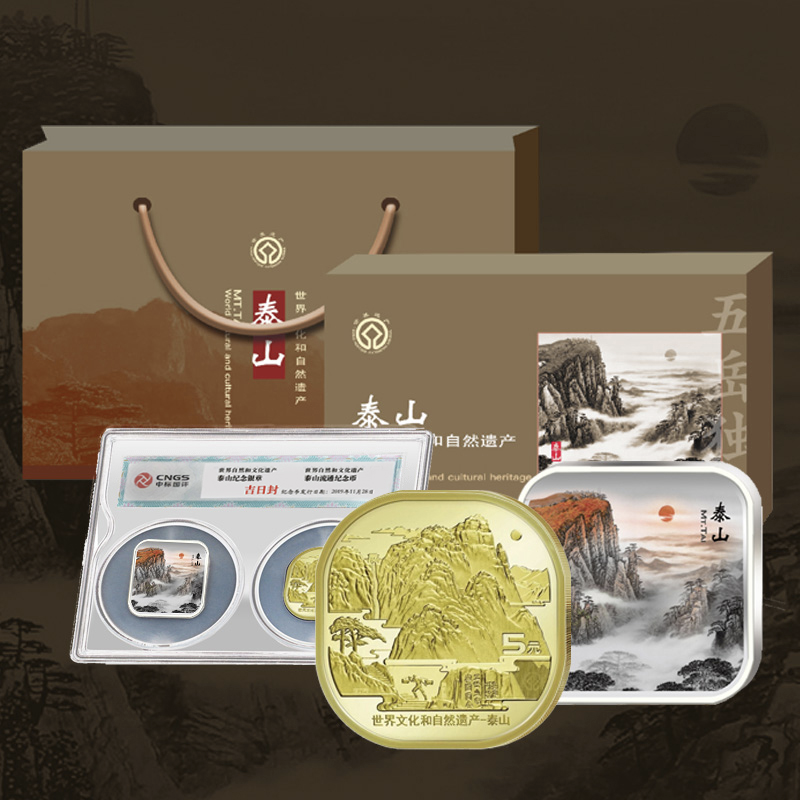 外包装采用古朴的包装,作为双遗纪念币“龙头”老大哥,这样的包装更凸显了泰山的厚重感。