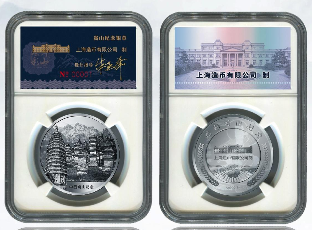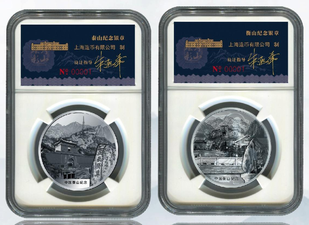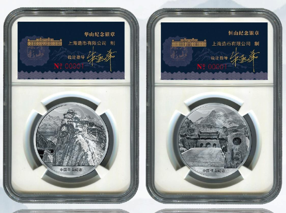 除了5组炫透+亮彩卡,还有5枚银质纪念章。这5枚银章分别以泰山、衡山、华山、恒山、嵩山等五大名山为主题,每枚银章含足银5克,由著名设计师朱熙华设计指导,并签名认证!