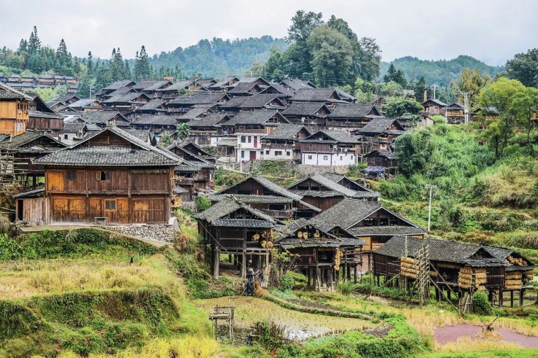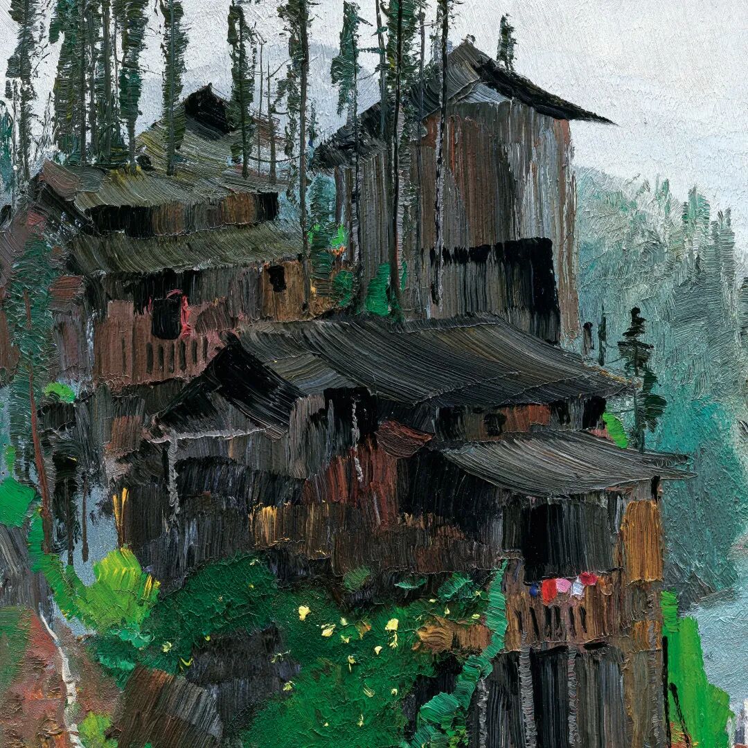 屋舍建筑象征人的居住与群聚,对于抒写自然景色的风景画而言,村舍或房屋的描绘无疑为画面注入了人文意涵与生活层面的叙述,此场景的摹写因而充斥着吴冠中对于日常生活的丰富情感,随着他在 1970 至 1980 年代之间创作风景油画的多元主题与风格演变,《侗家山寨》以自然景致与人文风光的结合,透露艺术家寄托于画面形式美感下的深层意涵,屋舍背后隐含的历史轨迹拓展了风景创作的深度与广度。