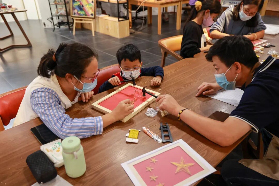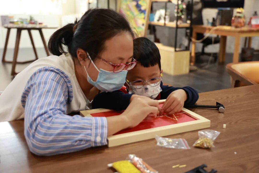招募活动推送后,众多家庭前来咨询,钉板绕线画,又名钉子画、弦丝画,是一种由钉子和线牵拉而成的图画。做法是先在木板上根据大概的轮廓钉上钉子,然后用线在钉子之间交互缠绕,组成几何图形或者图画,有一种线性的美。今天是红色主题的钉板绕线画,课程开始,艺术馆的专业老师做了耐心细致的讲解,流程如何、怎么布局等,小朋友们被新奇的活动吸引,专心致志听讲。老师讲解结束,家长们带领小朋友开始制作,先固定好钉子的位置,再用线完成整体构图,看似简单的绕线画,需要耐心、细心和灵活的手眼配合。在制作过程中,老师随时观察进度并给予一对一的指导,保证每个学员的体验。参加活动的家长表示,今天的活动非常有意义,带小朋友一起做红色主题的钉版绕线画,既让小朋友的假期生活丰富多彩,又可以通过这样的方式对小朋友进行爱国主义教育。北京陶瓷艺术馆作为爱国主义教育基地,举办了本次免费体验活动,让大家可以更多接触手作和传统文化,二十大即将召开,我们也能通过这种方式陶冶小朋友的情操,激发他们的爱国主义情感。