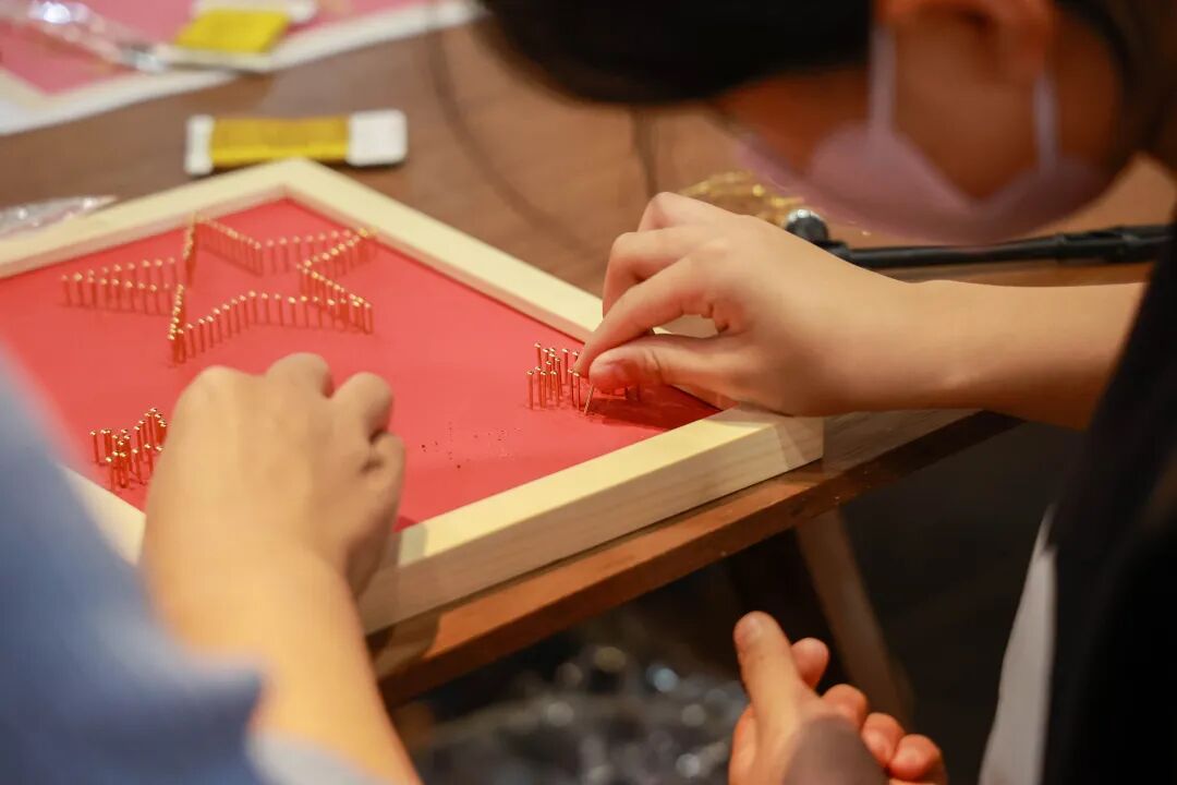 为了迎接二十大的召开,这个十一北京陶瓷艺术馆准备了多种活动,丰富大家的假期生活。1号的粘土手作,昨天的乐烧(活动进行中),到了今天,钉板绕线画开班了!