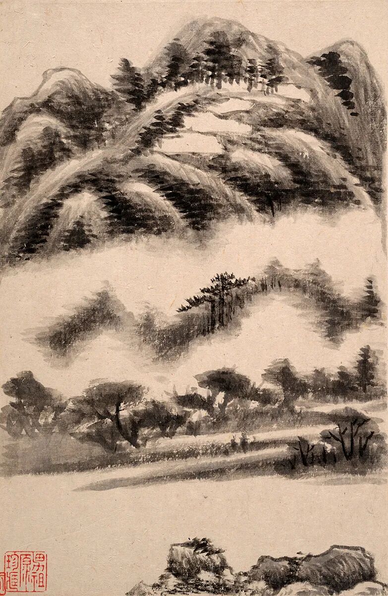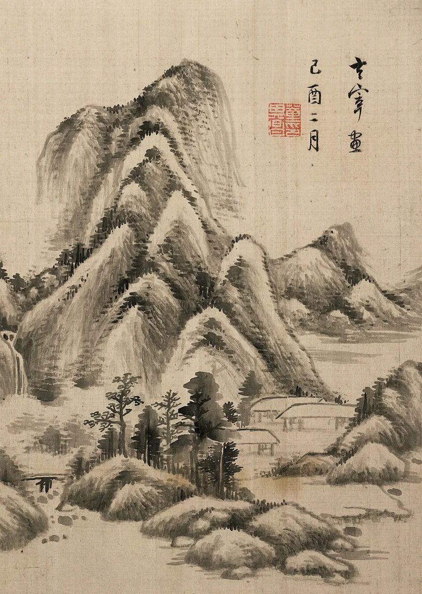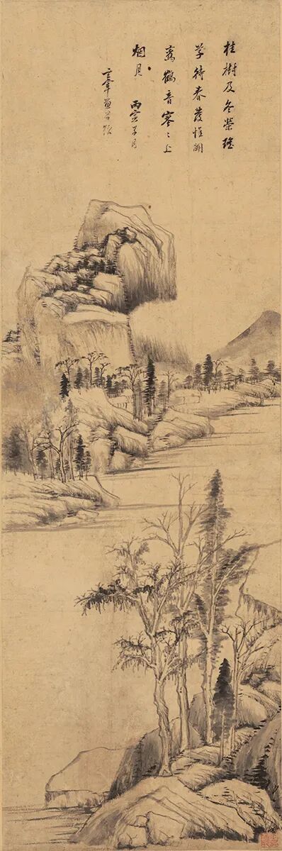 明-董其昌-仿古山水图轴31x50-纳尓逊