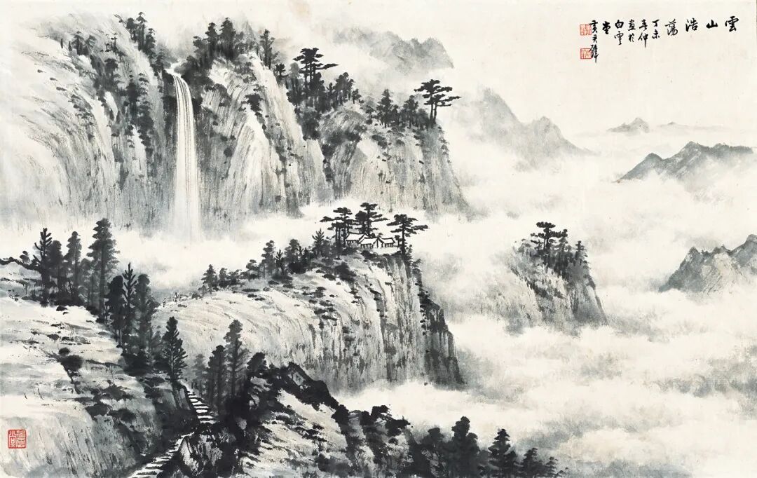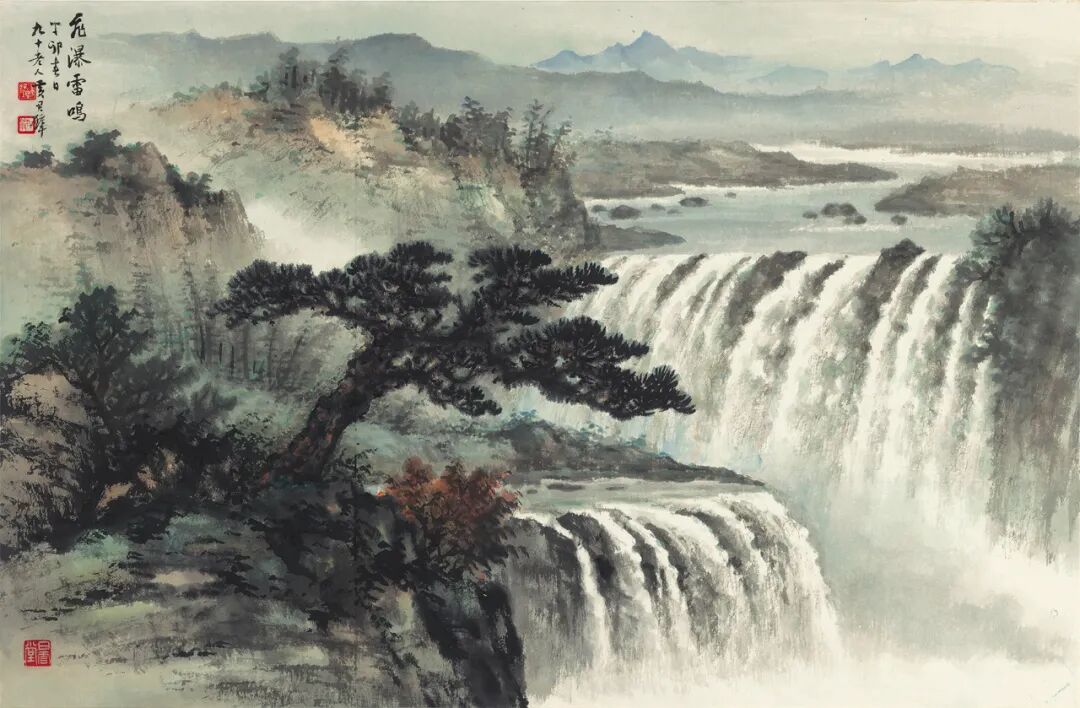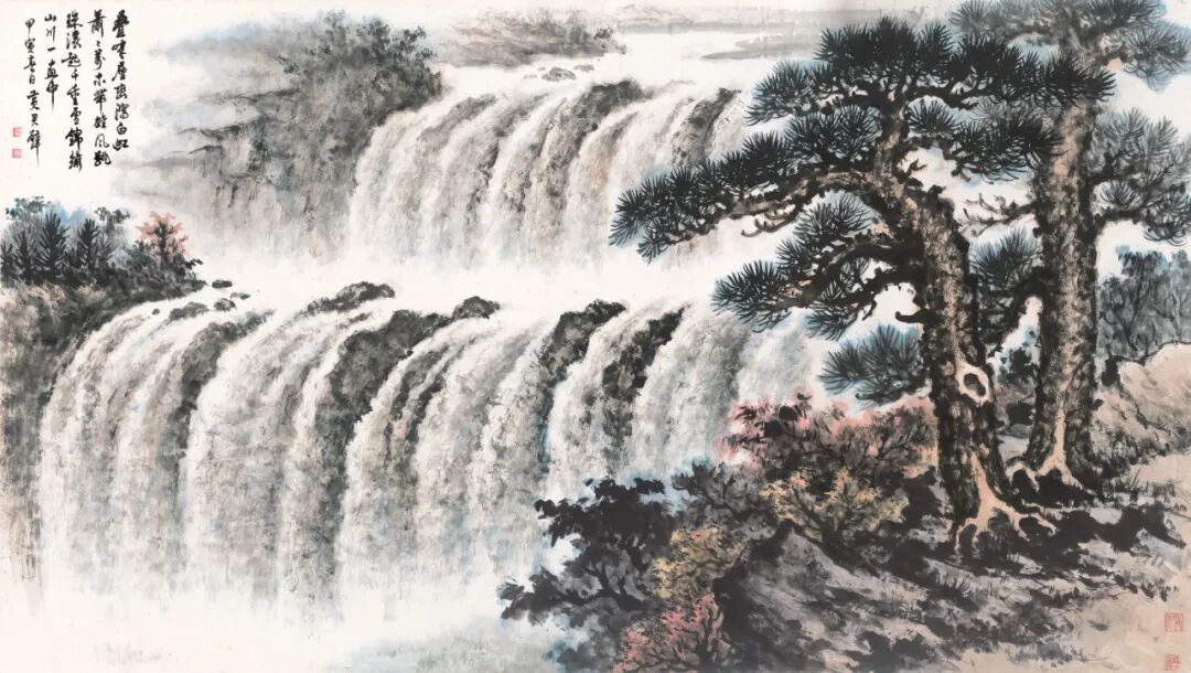 近现代-黄君壁-飞瀑雷鸣-59x90