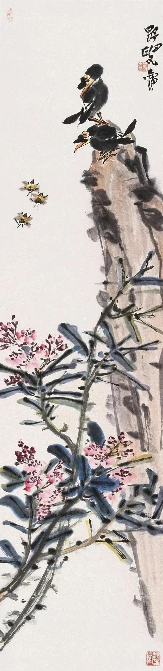 蒋雨浓的作品用笔老辣遒劲,力透纸背,虽一点之微却落纸有声,特别是他的鱼虫花鸟画,不受传统花鸟题材局限,一经摄入笔底,令人耳目一新。