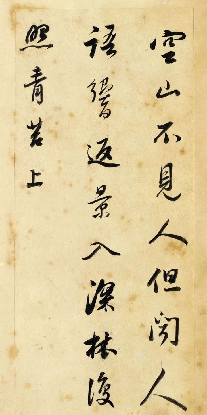 释文:空山不见人,但闻人语响。返景入深林,复照青苔上。