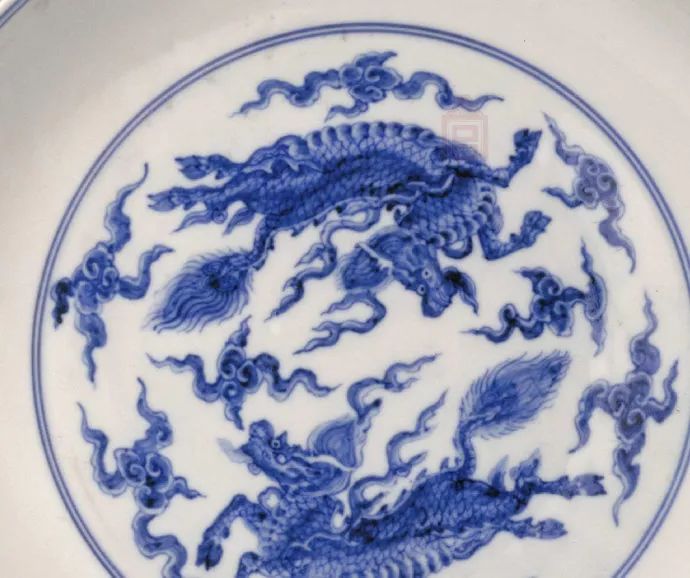 此器纹饰生动,腹部淡描海水,浓绘九龙,形态威猛生动,气势夺人。成化青花器以青色淡雅著称,此器青花深浅相衬,更烘托出神龙之矫健,为成化青花瓷中的罕见佳作。