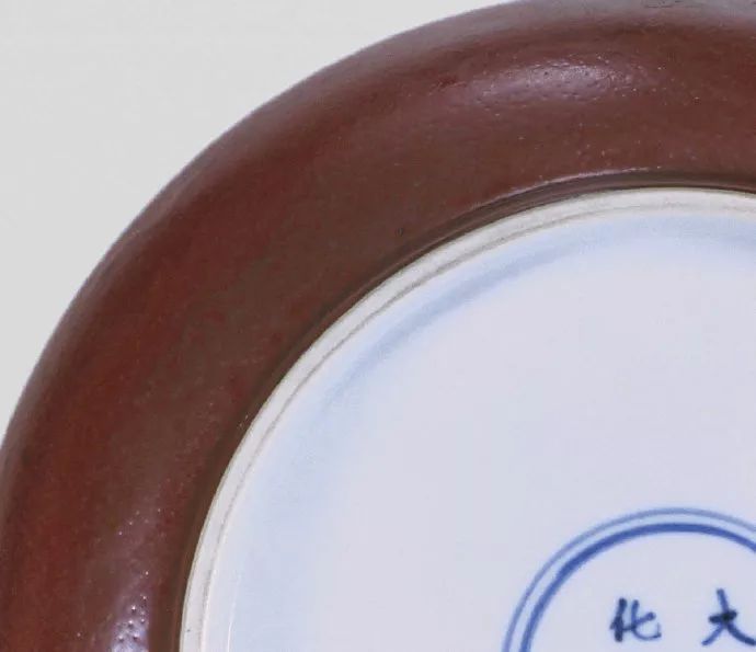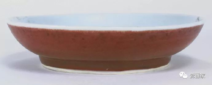 传世的成化鲜红釉瓷器极其罕见,故极珍贵。前些年景德镇珠山成化官窑遗址出土成吨的瓷片标本,鲜红釉瓷标本仅属个别,而上述鲜红釉盘标本亦属仅见,说明成化鲜红釉瓷只是偶然烧造。这种盘的造型、釉质(釉内气泡、桔皮纹等)均极似宣德鲜红釉盘,如无款识,极易被误认为是宣德器。