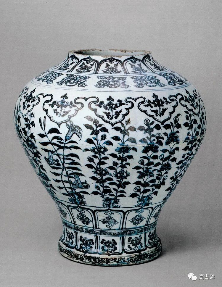 明洪武 青花花卉纹瓜棱石榴尊(残) 故宫博物院藏
