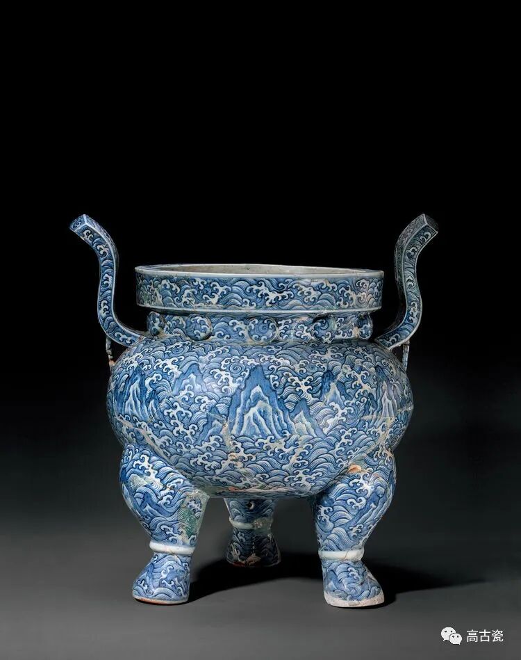 明永乐 青花海水江崖纹大香炉 高60厘米 口径39厘米 1994年出土 景德镇市陶瓷研究所藏