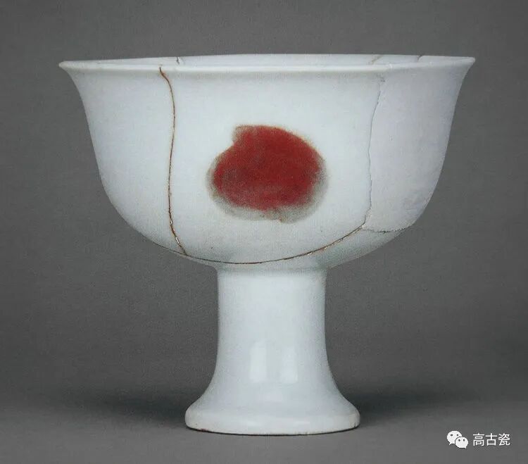 明宣德 釉里红宝烧三果纹高足杯 1982年出土 景德镇市陶瓷考古研究所藏