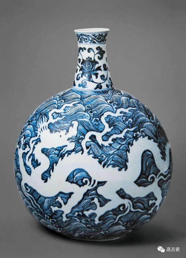 明永乐 青花海水白龙纹扁壶 故宫博物院藏