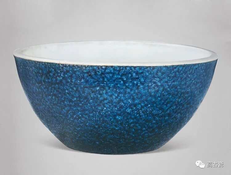 明宣德 洒蓝釉暗划海水云龙纹钵 1983年出土 景德镇市陶瓷考古研究所藏