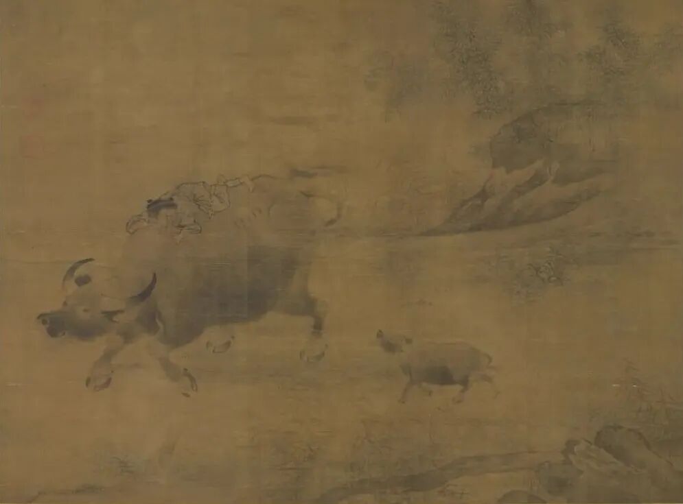 童子牧牛题材最早流行于宋代田园生活题材画作中,台北故宫博物院收藏李唐童子水牛及乳牛图手卷便为一例。宋代以后,童子牧牛主题成为远离世俗烦嚣、礼仪及公务,追求简朴生活之象征。