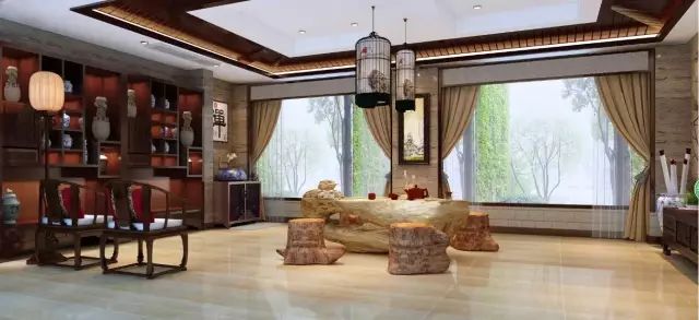 ▼样式色调凸显中国元素,品茶之道尽显茶室风范。