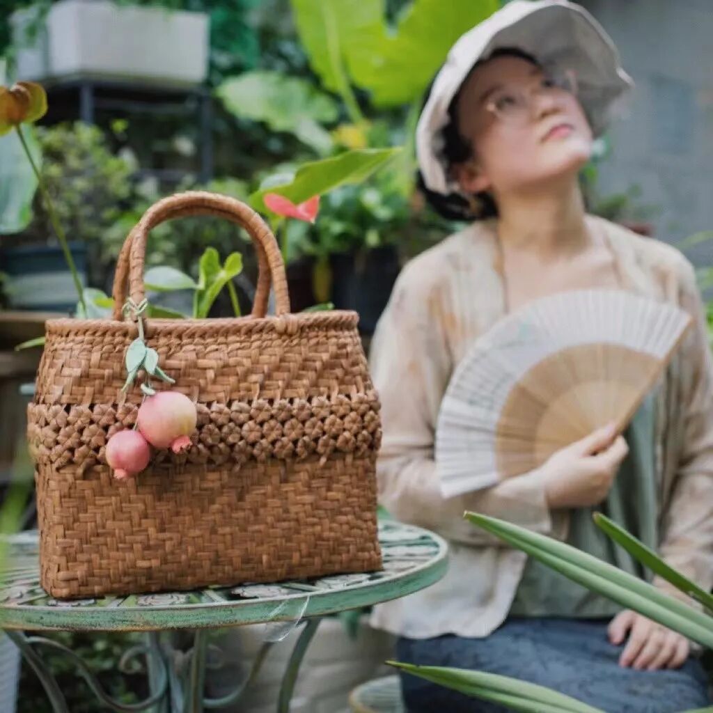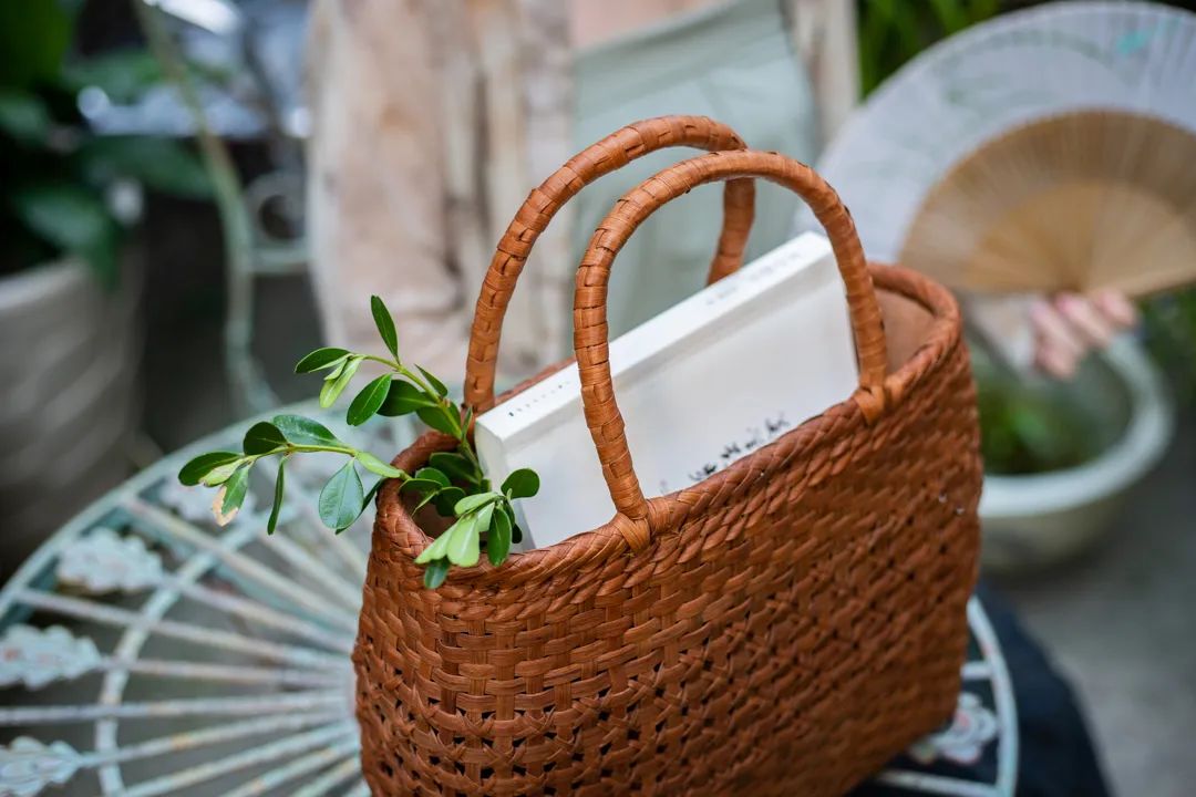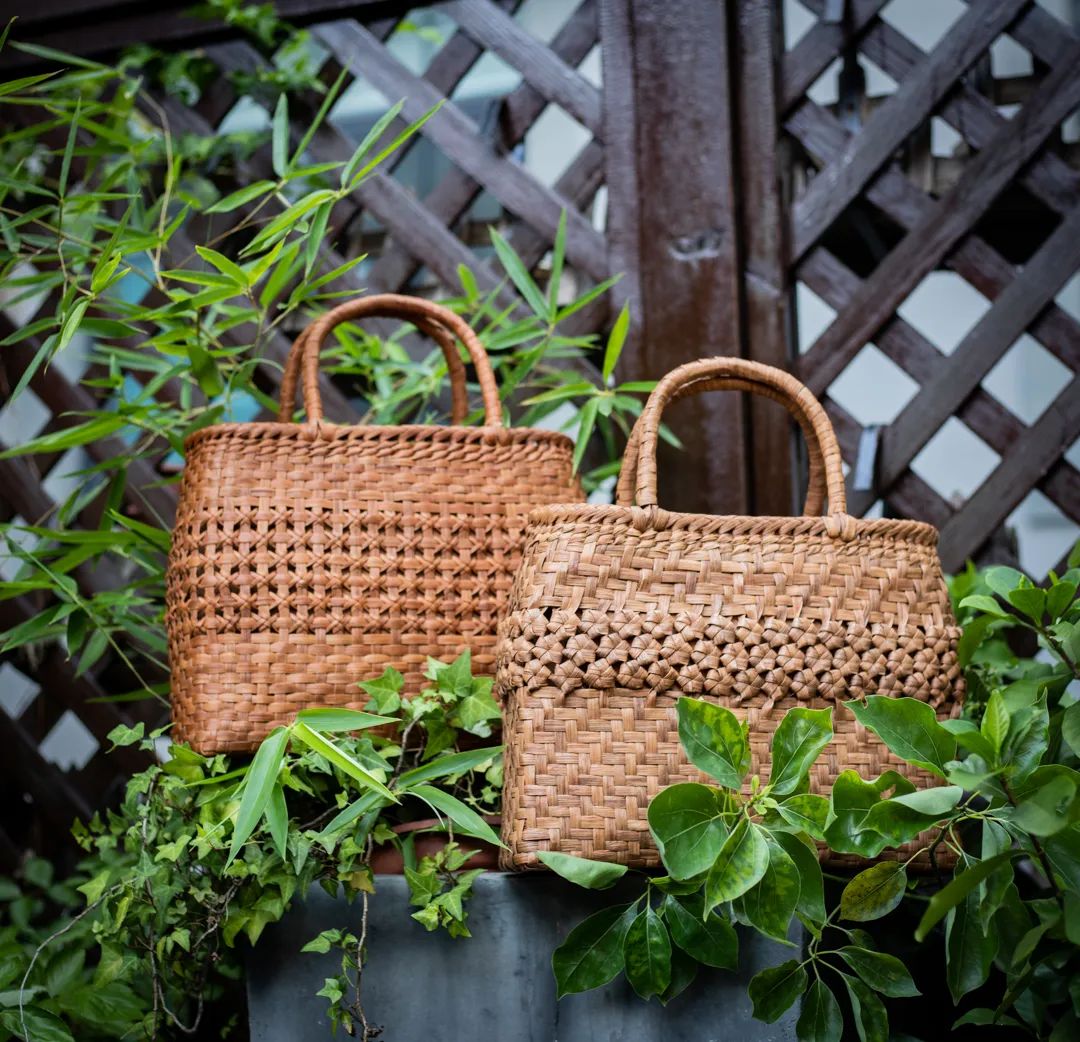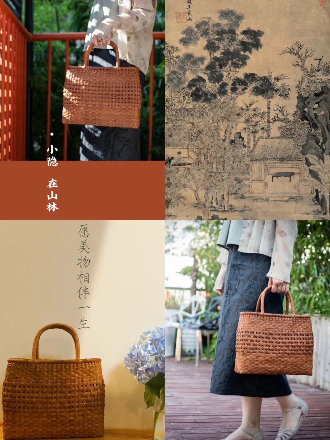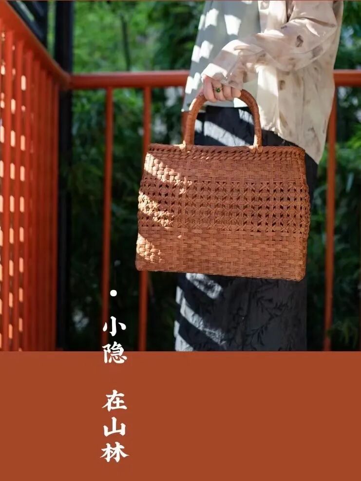 不同于普通竹编、草编包,野山葡萄藤编织的包,色泽典雅、手感温润,越用越柔软,越用越欢喜。