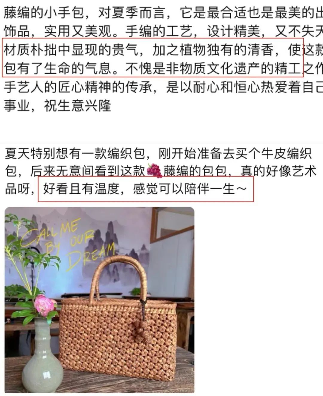 网上有些便宜的编织包,用胡桃皮、草绳、甚至纸藤(牛皮纸拧成丝)替代,廉价感、毛刺多、又不耐用。