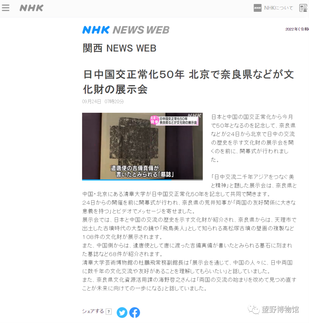 2022年9月24日,由清华大学与日本奈良县政府联合举办的“跨越两国的审美:日本与中国汉唐时期文化交流”特展,亮相清华大学艺术博物馆。