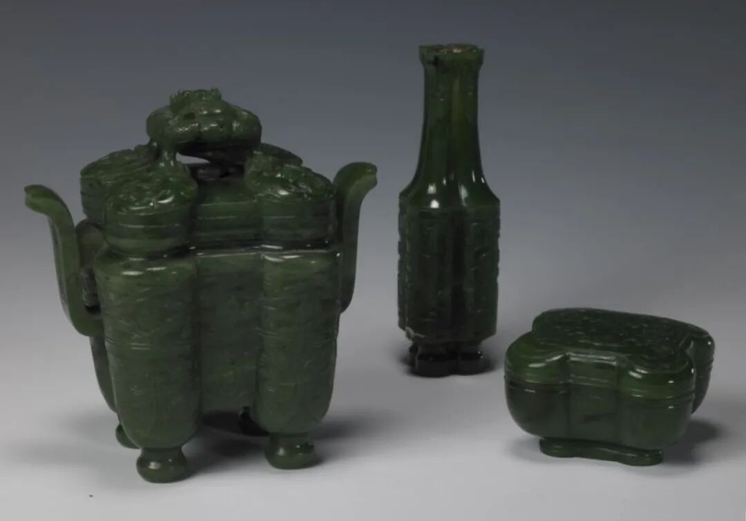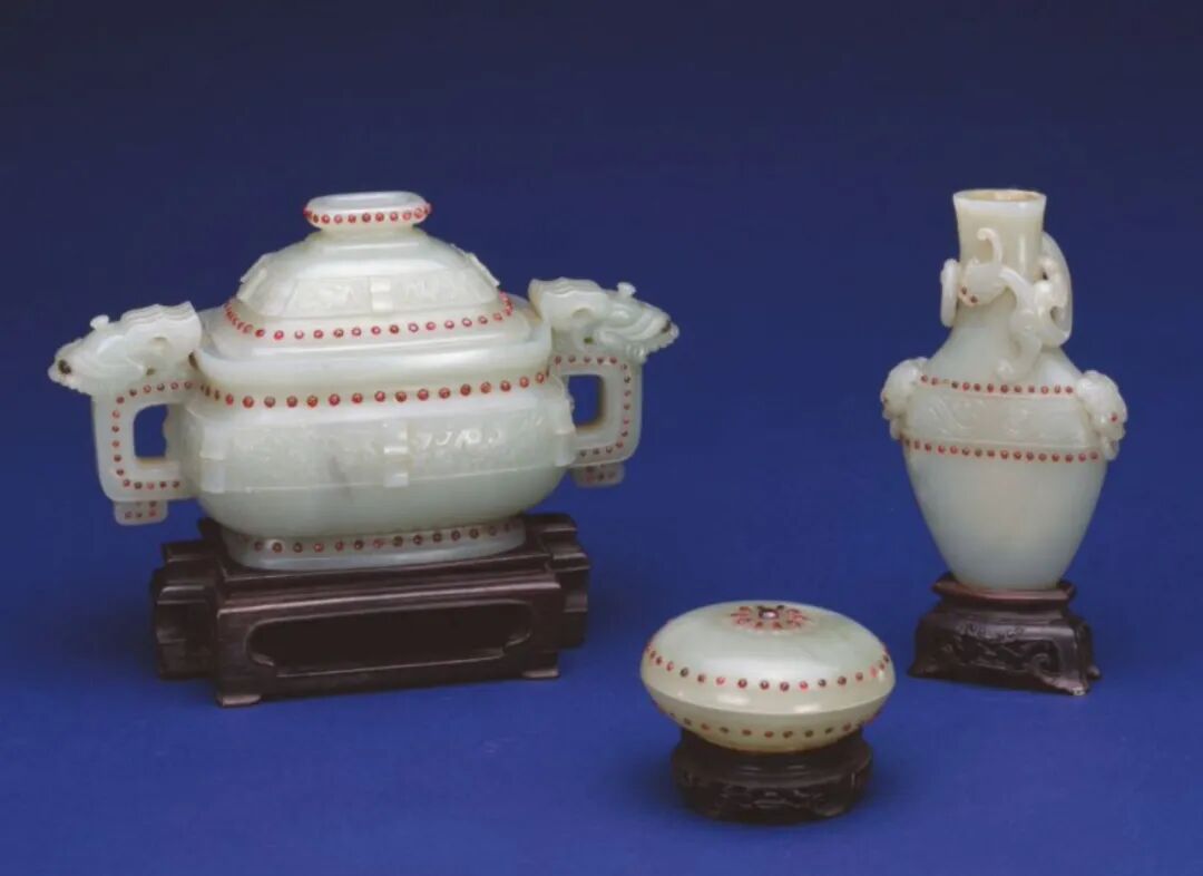 清 青玉嵌红宝石炉瓶三事