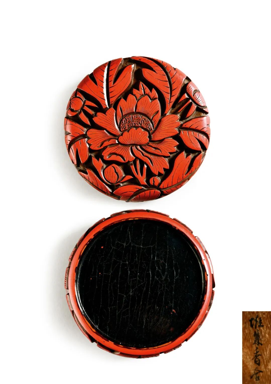 元 剔犀 牡丹纹香盒