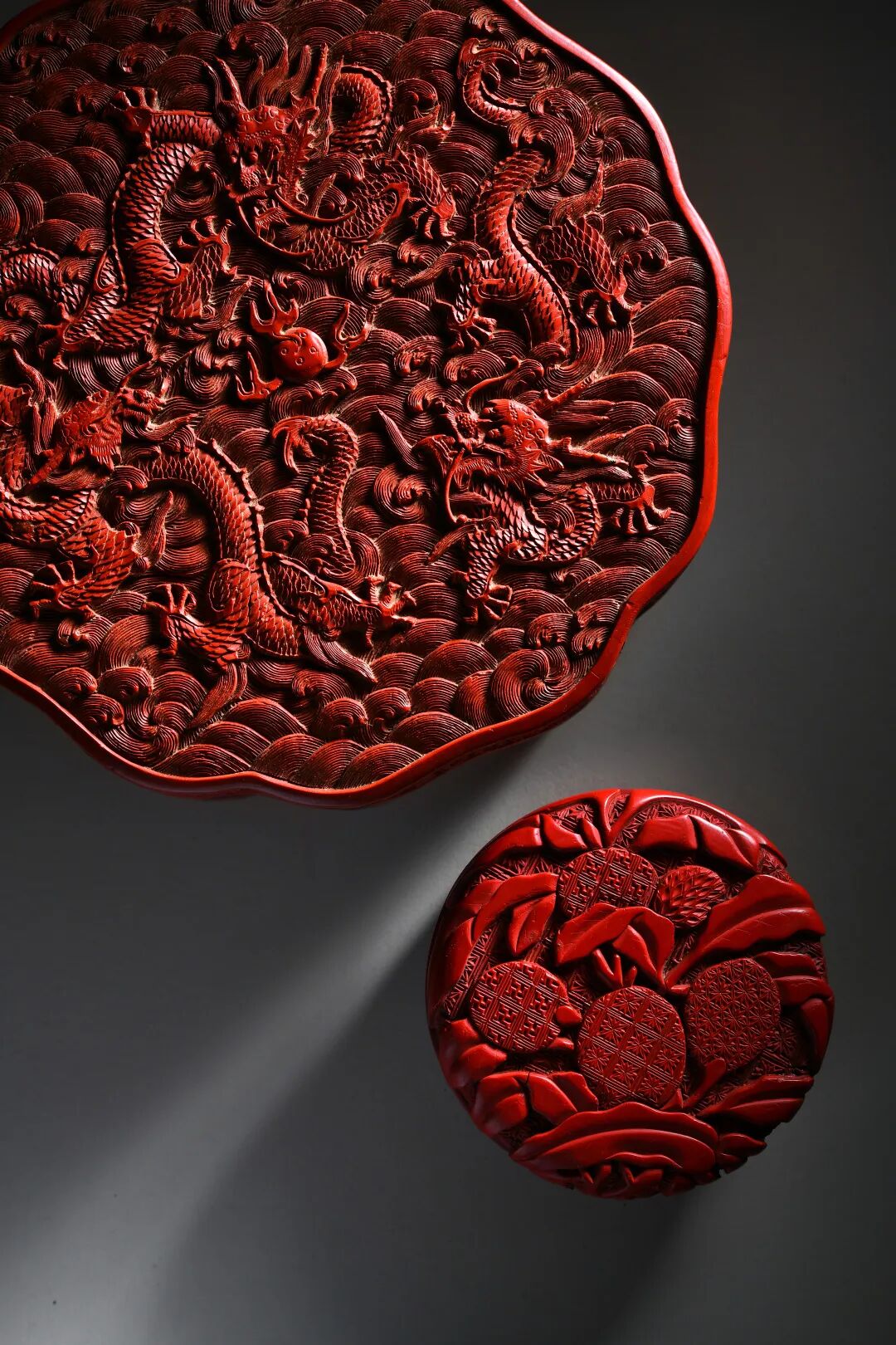 明清 雕漆香盒一组十件