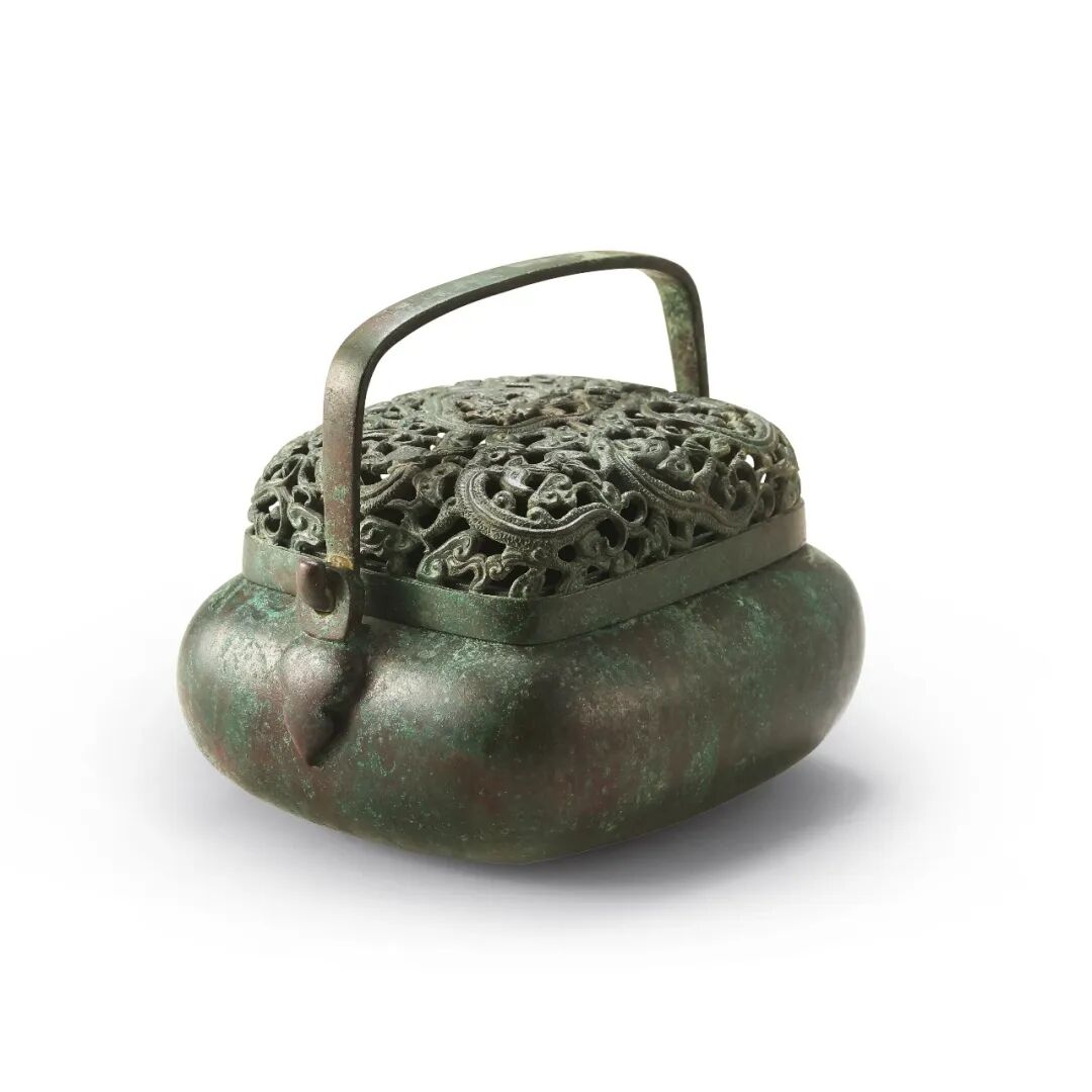 汉唐之前用香,大多借助炭火熏烧香品,炉具也多以“熏烧”功能为主。明清时期仍有延续,香器可见熏球、手炉、熏笼等。熏球,又名被中香炉,多为银、铜等金属所制,球壁镂空,球内依次套三层小环,以转轴为心,内层悬挂焚香的小钵盂。无论熏球如何转动,钵盂始终保持水平,可设提链悬挂,也可设底座平放。手炉主要用以取暖,精致小巧,炉盖镂空,盛行于明清。熏笼是在香炉的基础上加“笼”形器物,用来熏大件衣物,如衣裳、被褥等,亦可用于取暖。明末嘉兴张鸣歧即以制铜手炉著称,其炉铜质匀净,花纹工细,炉下四足皆锤敲而成。炉盖严丝合缝,久用不松,盖上花纹极细,足踹不瘪。炭虽炽而炉体不过热。