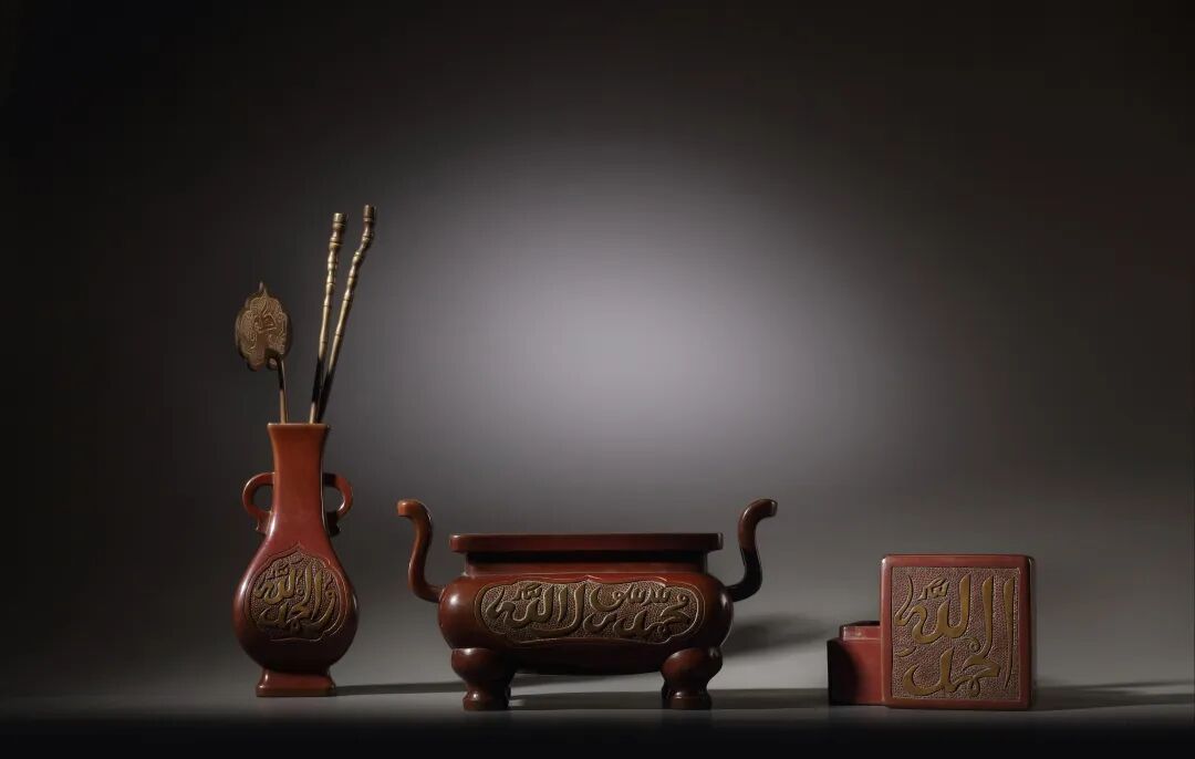 明代以降,炉瓶三事作为文房清供,一度受到文人雅士的礼遇。但时移事异,文化断层等因素导致本应成套的炉瓶三事在当代的文人书斋中大多只剩下孤零零的香炉。在现代的文物管理系统里也被分散保存和展示,实为可惜。近几年,拍卖市场上偶有出现精美非常的炉瓶三事,吸引了众多藏家关注。如中贸圣佳在今年的春拍中,就有一件套颇受瞩目的炉瓶三事,此套阿拉伯文炉瓶三事为罕见的方炉、方瓶、方盒三件方器成套,且形、色、款识皆具正德本朝之典型风格,皮色枣红光润,为铜炉收藏中难求的佳品。要知在明清香设铜具中,方形器本已难得,此品形制典雅规矩,且完好成套。这些年,拍卖市场上不乏有阿拉伯文炉、瓶、盒,但能够成套流传的正德阿拉伯文炉瓶三事却十分稀有。