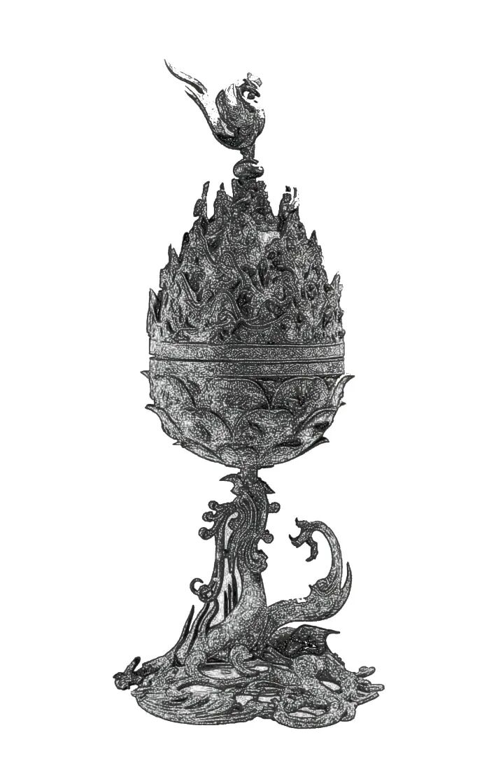 至西汉中叶武帝时期,中央集权的加强,使南海乃至远西的龙脑、苏合等树脂类香料,随着朝贡与贸易传入中原。此类异域香料之馥郁芬芳远胜于中原的香草,它们在薰烧、使用时,也与传统茅香直接燃烧的方式不同,须下承炭火,在相对封闭的环境中,徐徐薰蒸出香气来(相关论述,可见于孙机《汉代物质文化资料图说》,文物出版社1991年版,页360-361)。新香料带来了薰香方式的变化,相应地也要求薰炉的造型更加深腹、少孔,适于在少氧环境下阴燃,博山炉也就由此应运而生了。