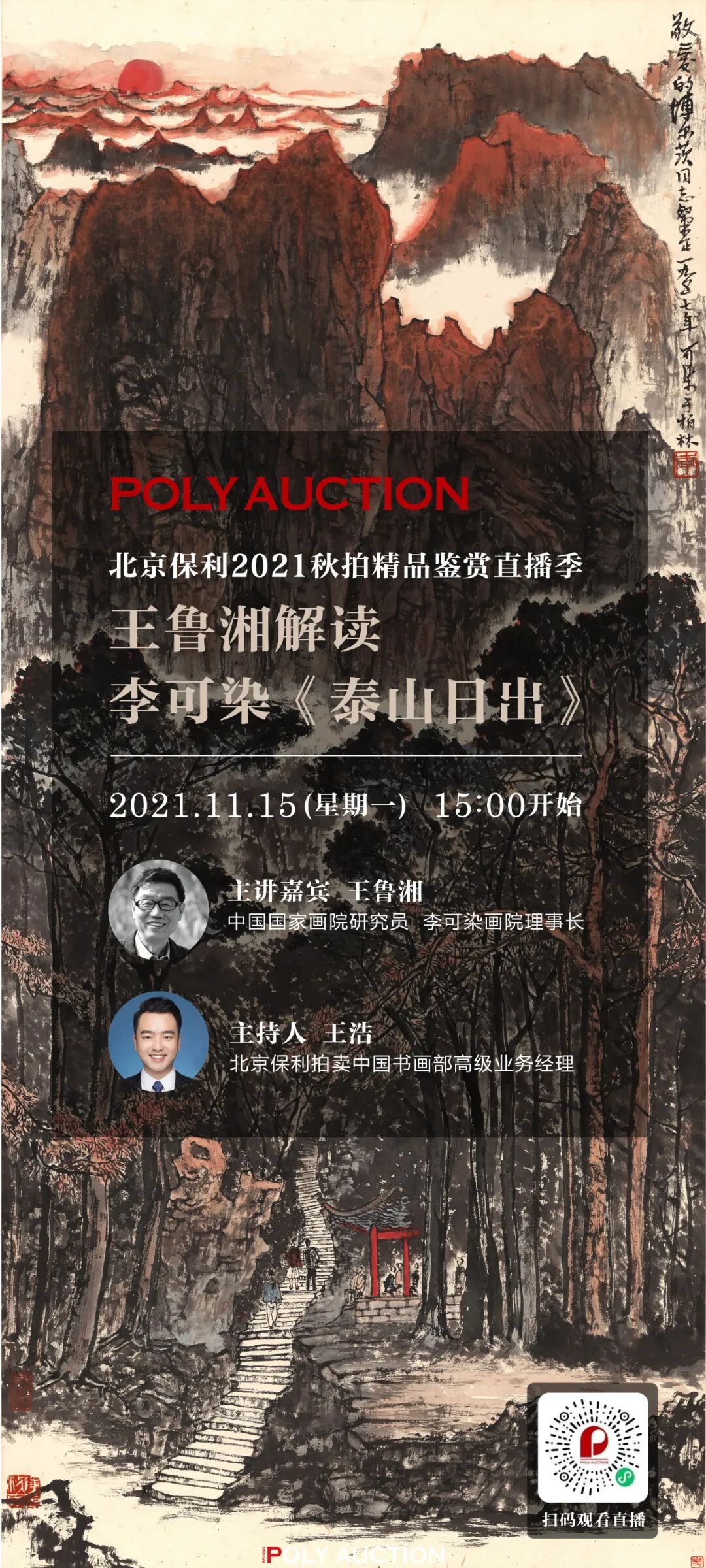 11月15日,保利拍卖中国书画部特邀中国国家画院研究员、李可染画院理事长王鲁湘先生,携手中国书画部高级业务经理王浩为您带来秋拍巨作李可染《泰山日出》精彩对谈,干货满满,不容错过!