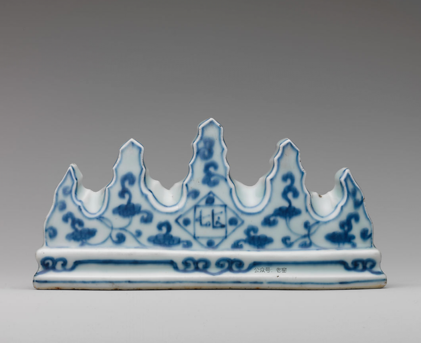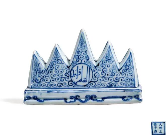 明正德 青花卷草阿拉伯文五涯笔山“大明正德年制”款