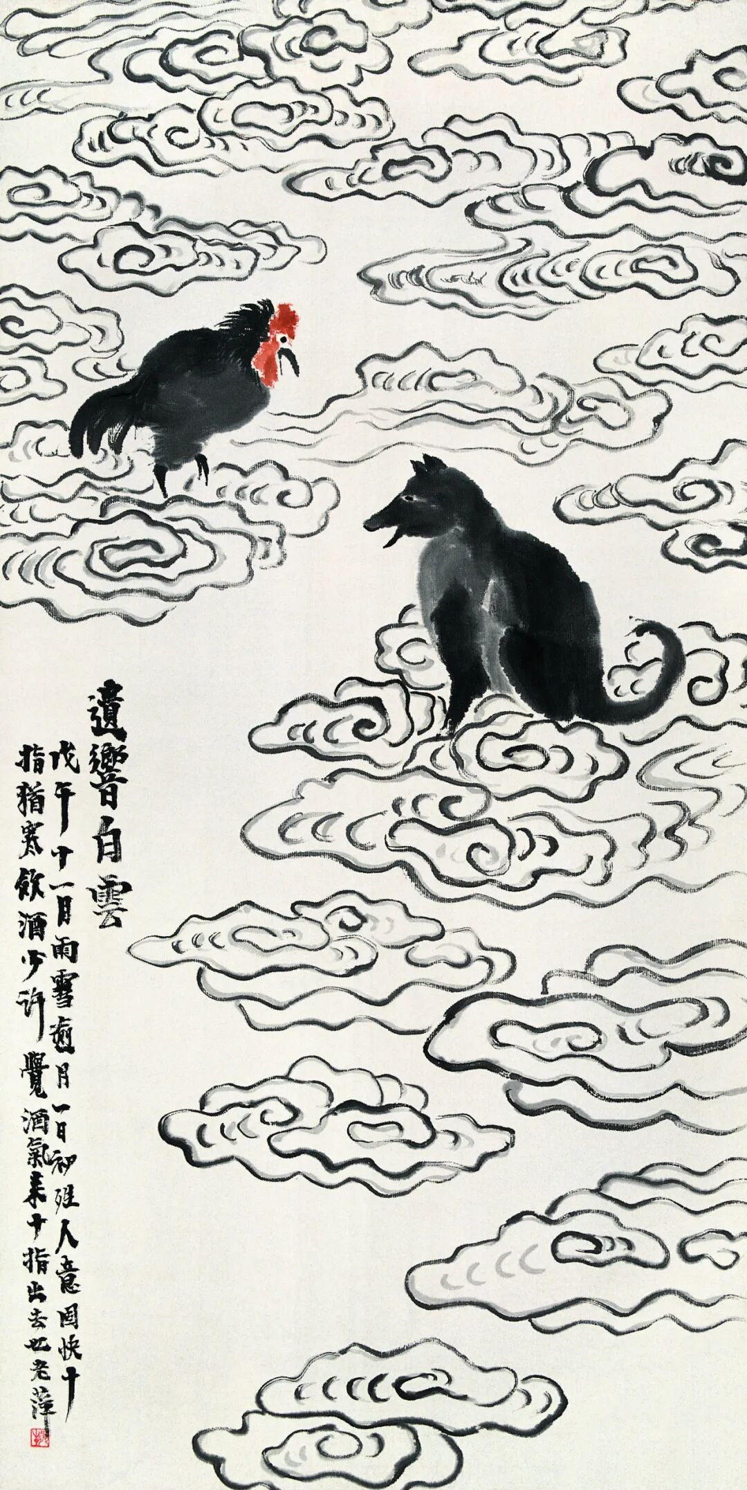 齐白石(1864-1957)《遗响白云》, 纸本设色, 89 × 44 cm.,1918年。此作正于 “南张北齐 —张大千齐白石书画艺术特展” 中展出。图片鸣谢荣宝斋