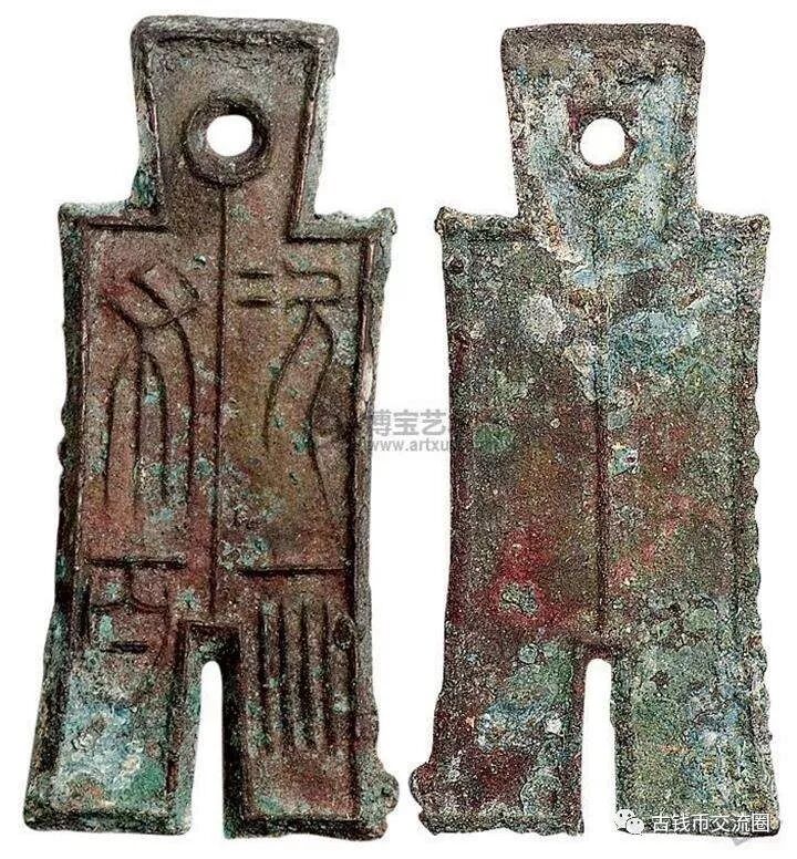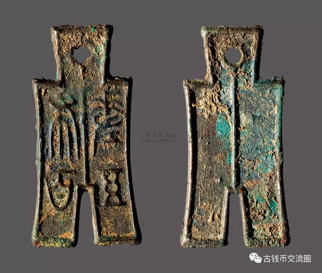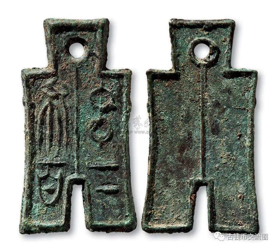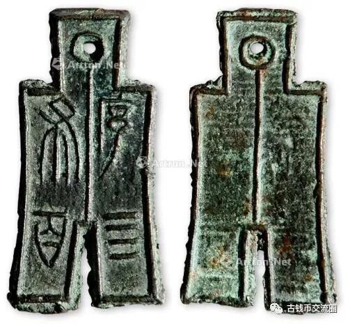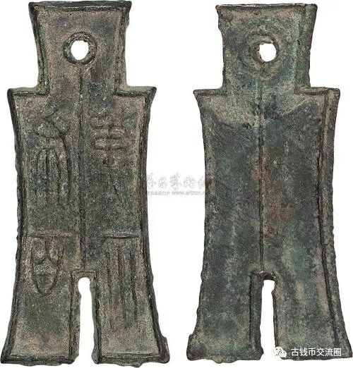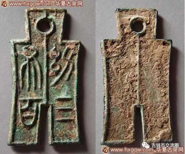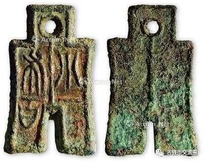“货布”二字以小篆中垂针篆字体列于两侧,笔锋犹如钢针倒悬,故又称为“悬针篆”,书体潇洒俊逸,古朴自然。在长达30厘米的笔划中,笔线仅宽0.36毫米。可以说,币面上的“货布”二字,高度概括了汉代时期的物质生产与商品交换水平。货布自天凤元年(公元13年)至新莽灭亡(公元23年)铸行十年之久,与“大泉五十”、“货泉”合为王莽三大“长命钱”。![]()
