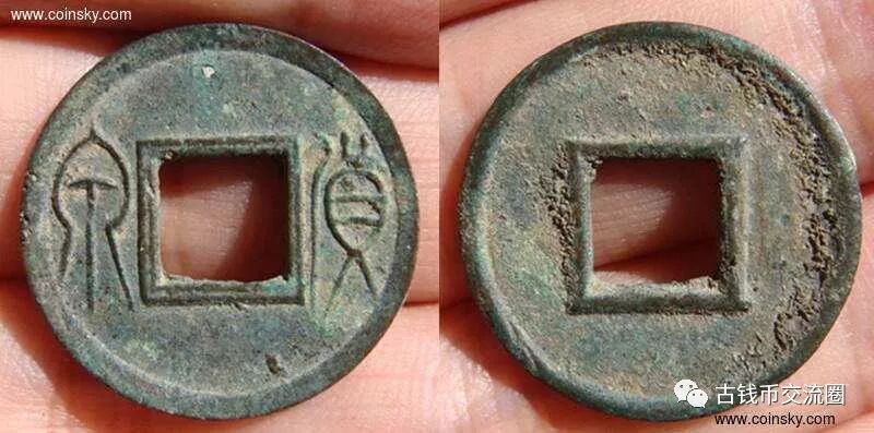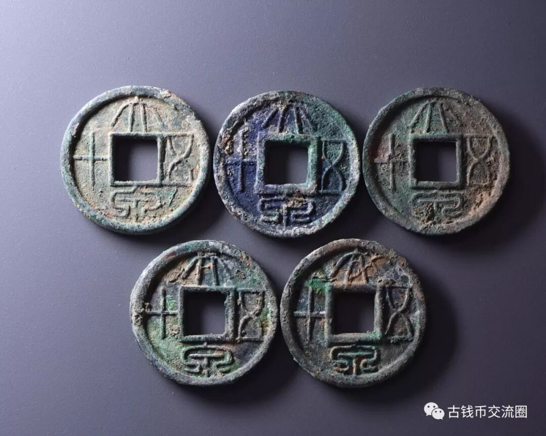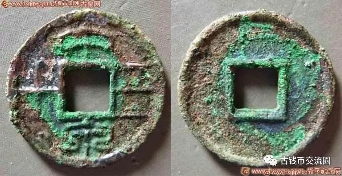 货泉从天凤元年起一直流通 到东汉光武帝建武十六年(公元40年)材质为青铜,尚见有铁质和铜夹铁者,钱文为悬针篆,泉中竖笔断开,(货泉饼者字纹多平夷,铸造粗劣)。货泉基本都是普通品种,其中的版别有双廓、穿上半星、穿下左决文、穿下右决文等等,带记号的钱币多是表明铸地,一般双廓版式的工艺和质量都较佳,可能是早期中央铸造的,带星点决文的应该是其他地方钱炉所铸,铸造不甚精,可能年代较晚。![]()
