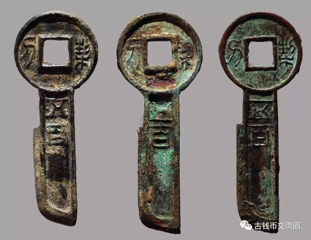 居摄二年,即公元7年,铸“一刀平五千”(可兑换5000枚五铢钱,“平”意为“值”),“契刀五百”(可兑换500枚五铢钱),“大泉五十”(可兑换50枚五铢钱),与西汉发行的五铢钱同时使用,发行“一刀平五千”与“契刀五百”的主要目的是掠夺中产阶级与富人阶层,王莽禁止他们私有黄金,用两枚“一刀平五千”或十枚“契刀五百”即可收兑黄金一斤,从审美上讲,“一刀平五千”与“契刀五百”的铸造达到了空前的艺术高度。