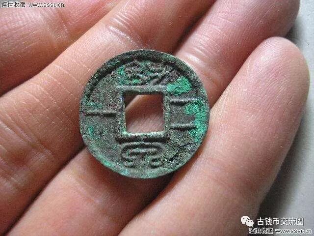 西汉末年王莽政权所铸造的六泉之一,铜质精良,文字精美,悬针篆。篆体泉字中竖断为两截,乃王莽泉之特点,按照新莽货币制度一枚“中泉三十”可以换取30枚五铢钱。由于新莽货币制度在于利用虚值大钱快速搜刮民间财富,自然得不到民众的支持,六泉十布制度旋即即废。![]()