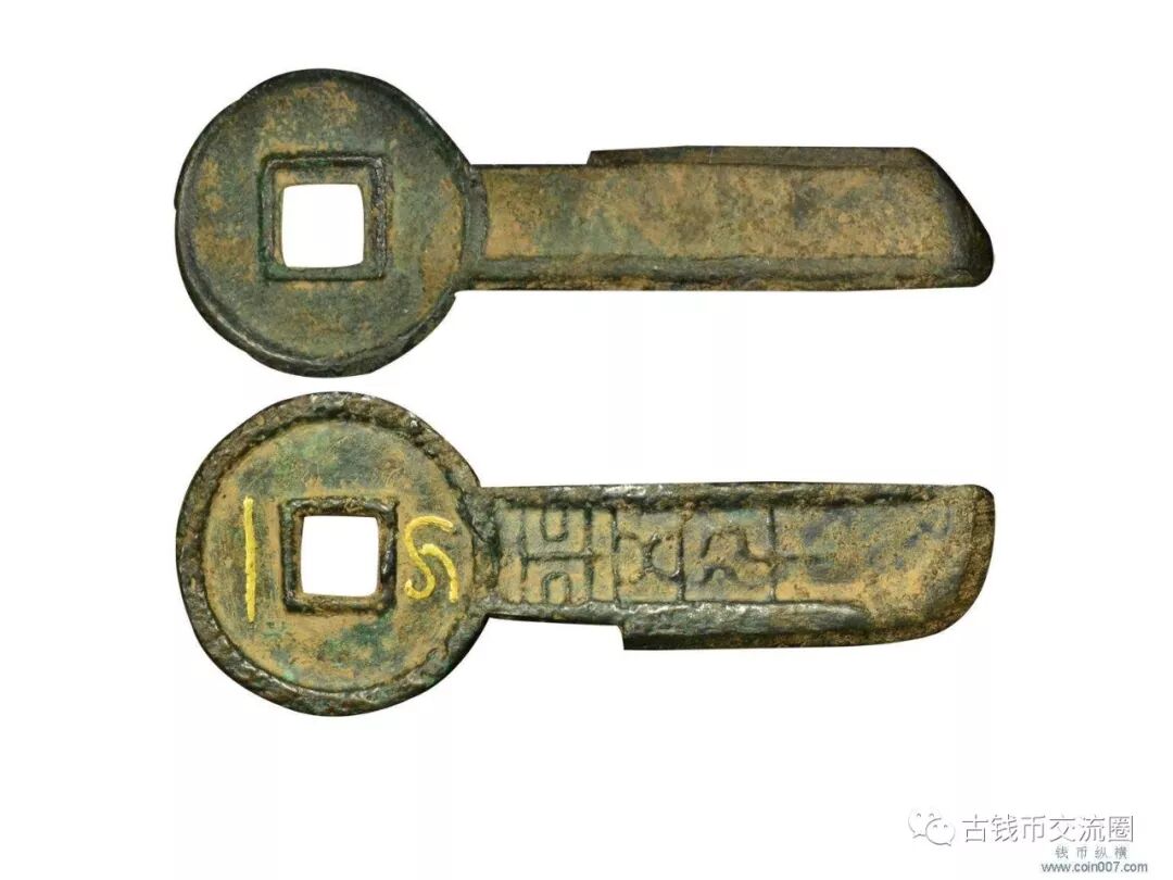 契刀五百, 中国古代钱币之一。西汉末年王莽政权铸造,形制怪异,分为上下两部分,上部为方孔圆形铜钱,穿右左分别书契刀二字,下部为刀形。币身直书五百二字,制作较为精整,该币长74.2毫米,币首为圆形方孔,直径30毫米,厚3.5毫米,总重量为16.5克,刀环有“契刀”两个字,横列方孔两侧,刀身铭“五百”二字,值五铢钱五百。在新莽货币制度下以一当“五铢”钱五百枚。民不乐用,不久即废。改用“六泉十布”制度。现今存世量仍不少,有如王莽之“一刀平五千”,因其形制特殊,铸造精良,备受藏家青睐,仍然维持在比较高的价位。![]()