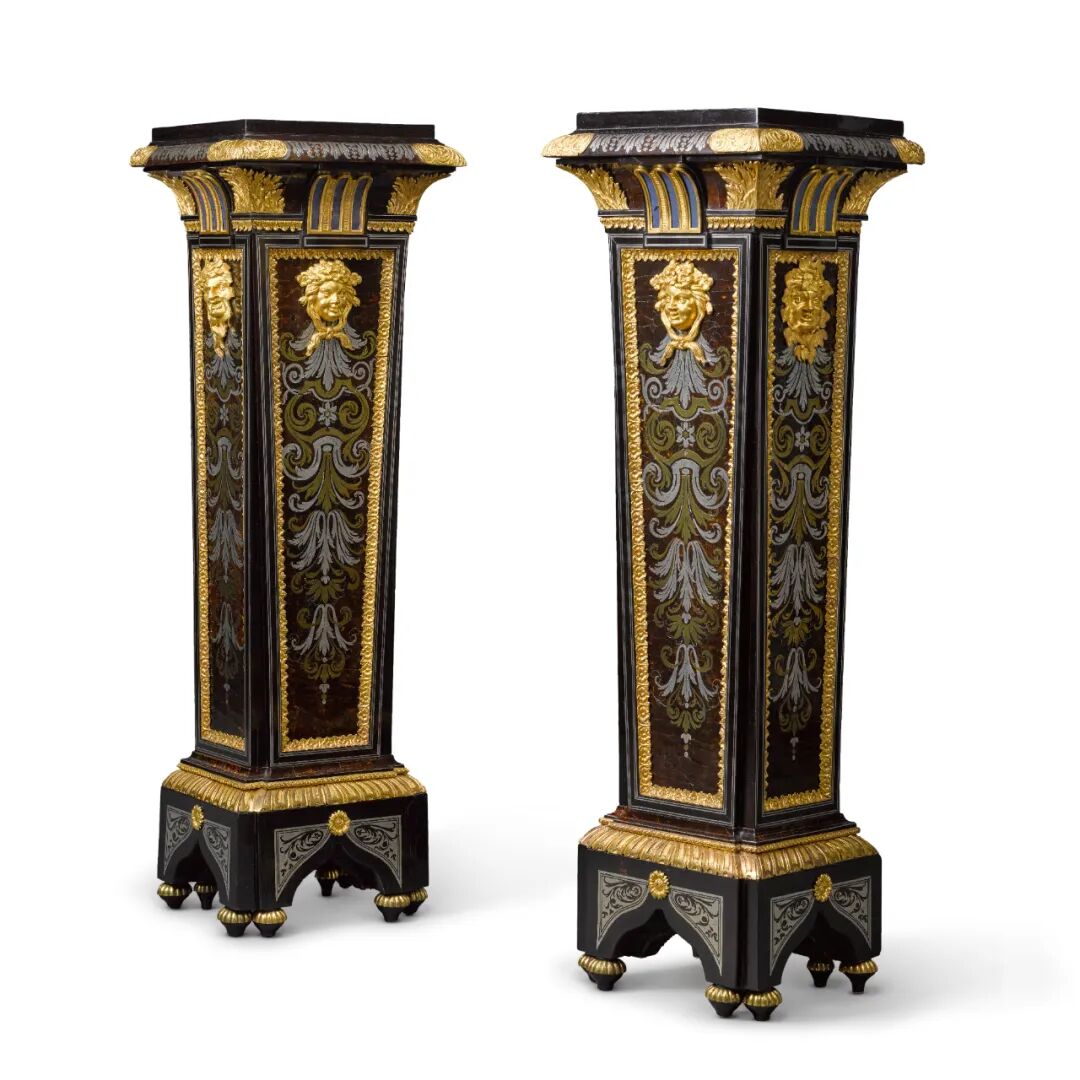 这对座原本用来承托由路易十四赠予王儿大太子路易的九件大型铜器,曾展于纽约大都会艺术博物馆 。