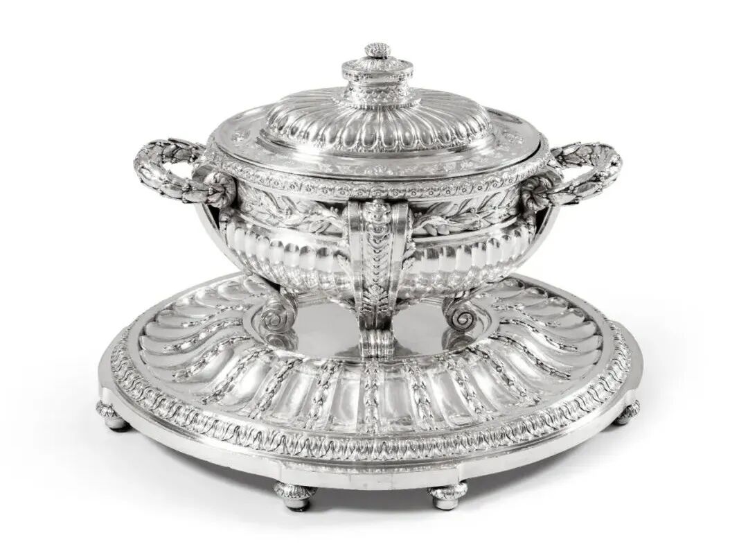 凯萨琳大帝的银器餐具:法国银汤盖碗及底座