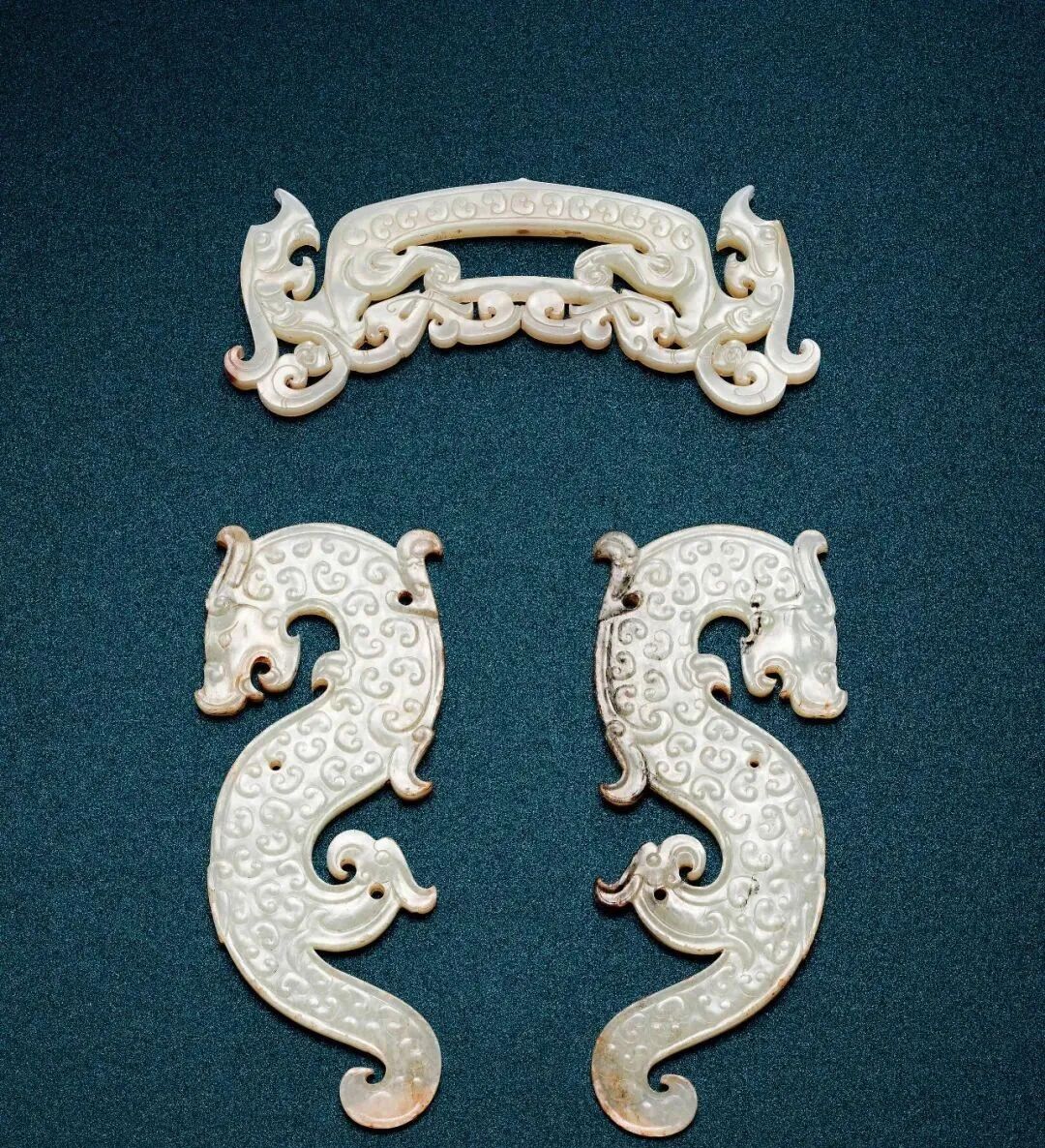 |白玉镂雕双龙首佩和白玉S形龙组佩|