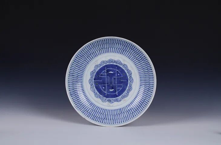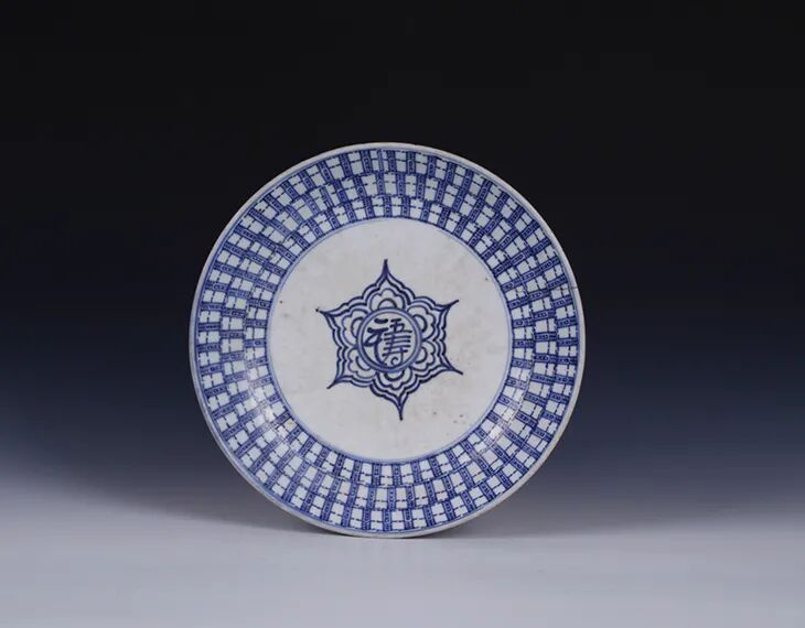 清·青花变形寿字纹盘